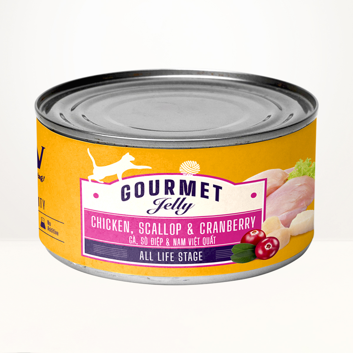 - Vị gà, sò điệp và quả nam việt quất: Ức gà, sò điệp, bột nam việt quất, nước tinh khiết, guargun, taurine, ,vitamin tổng hợp (A,D3,B1,B2,B6,V12), khoáng chất…